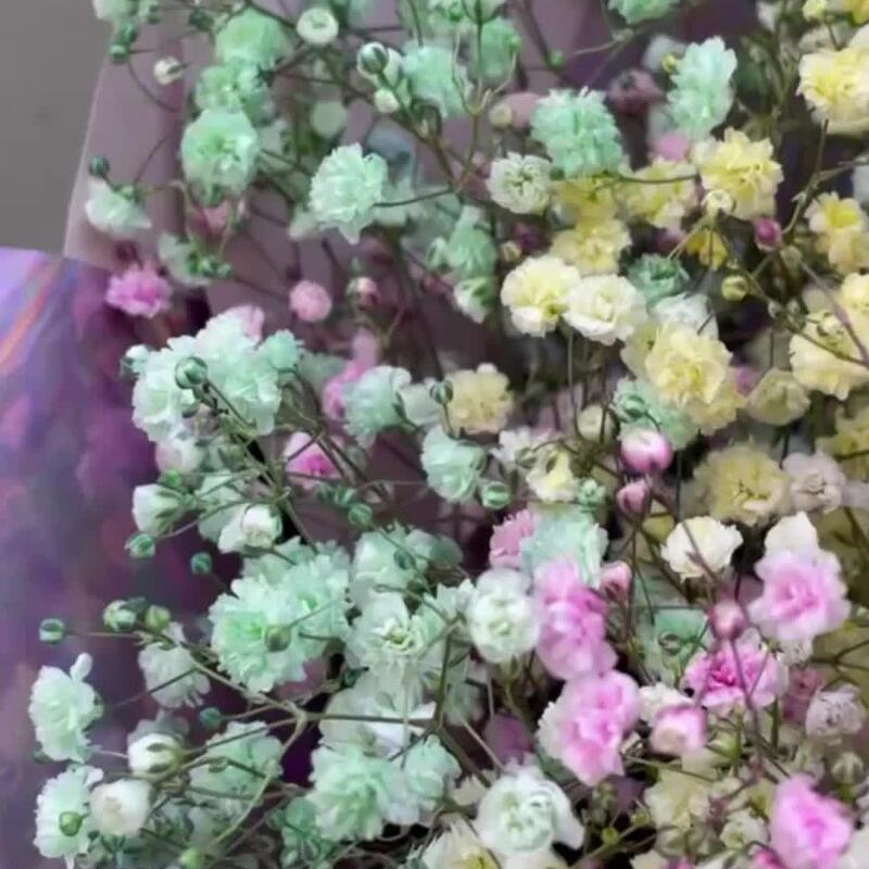 Лента атласная – 1 шт.Упаковка дизайнерская – 1 шт.Открыточка с вашими пожеланиями – 1 шт.гипсофила радужная – 5 шт.любовь флориста (бесплатно) – 1 шт.