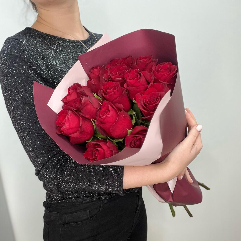 Упаковка – 1 шт.Лента атласная – 1 шт.Роза красная 50 см – 15 шт.